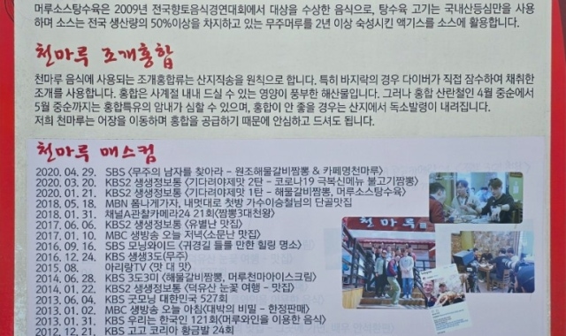 백승일은 이 특별한 메뉴를 두고 “무주의 맛을 가장 잘 보여주는 요리”라며 극찬을 아끼지 않았다. 그의 추천 이후, 천마루는 지역 주민은 물론 관광객 사이에서도 필수 방문 코스로 떠올랐으며, 짬뽕에 대한 고정관념을 깬 특별한 맛집으로 주목받고 있다.
